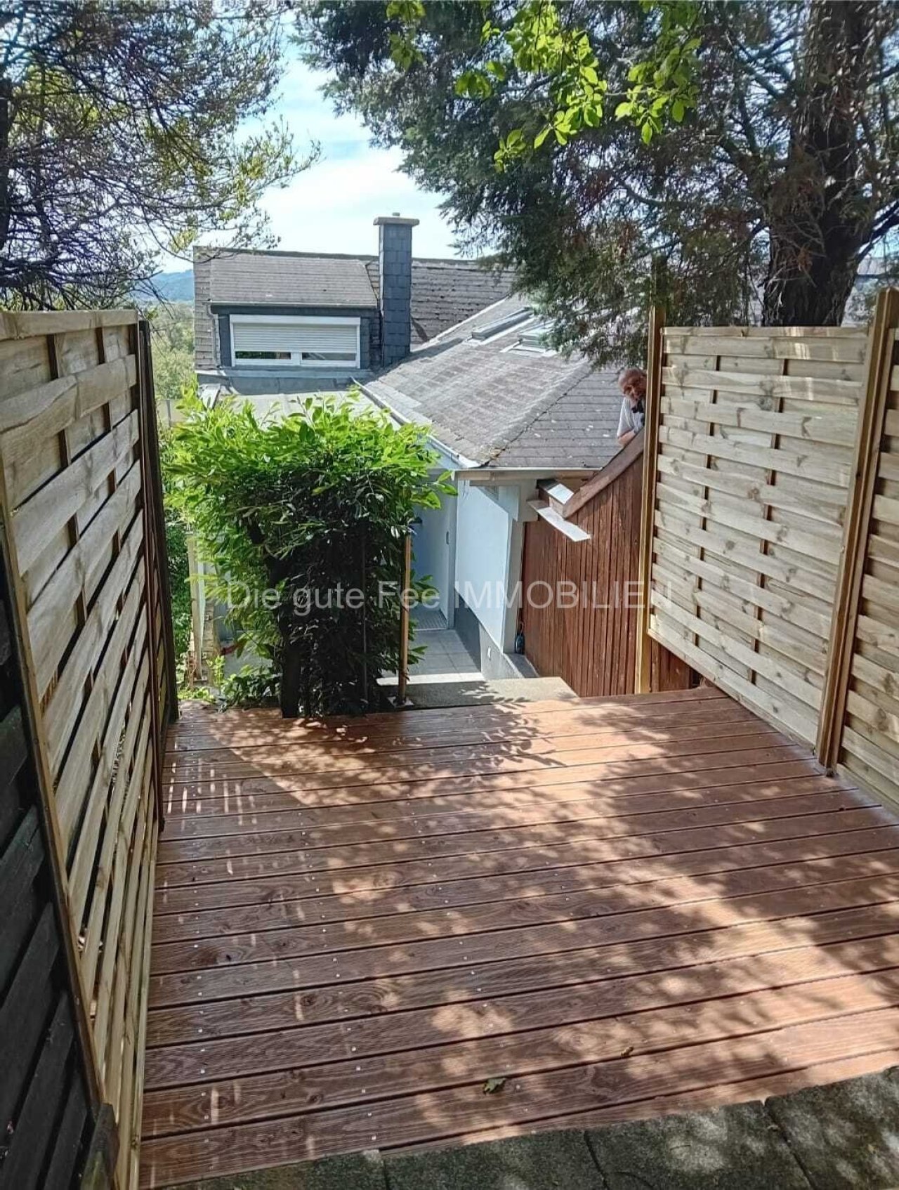 Es verfügt über 4 Zimmer, 2 Bäder, teils mit Badmöbel, schöne Terrassen zur Nutzung. Eine Einbauküche kann für 900 Euro zur Nutzung übernommen werden.